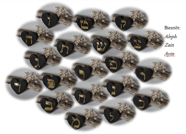 Bijoux - modèle - cœur - argile - lettre hébraïqueCœur d’argile – Ensemble 22 lettres hébraïques