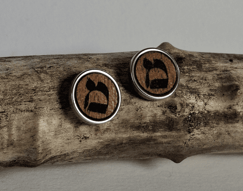 Bijoux - modèle - boucle d'oreille - bois - lettre hébraïque - MemPuce bois & métal / Mem N°13